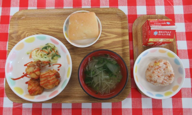 スープ(玉ねぎ、春雨、小松菜、炒り胡麻)