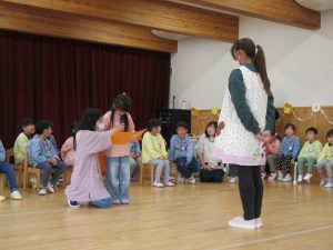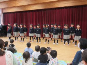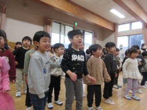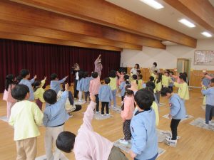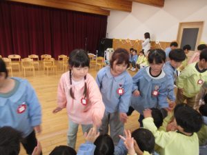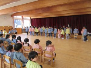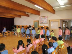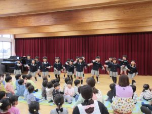 おやつの後には、みんなの部屋に集まり、たいよう組(5歳児)さんがお礼のダンスを見せてくれました。