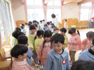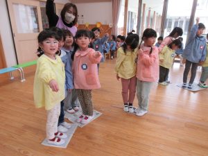 ほし組(3歳児)は、ジャンケン列車で遊びました。
