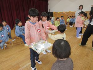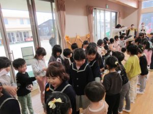 小さい子の目線に合わせたり、優しく声を掛けてくれたりした、たいよう組のお友達。私たち職員は、その姿を見て「お兄さん、お姉さんになったな~」と、しみじみと成長を感じました。