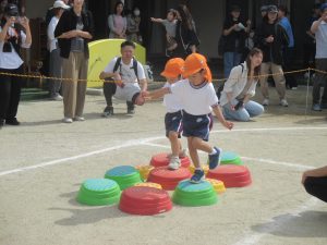 1・2歳によるちびっこ運動会(10月10日)にわかれて、行いました。