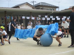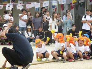 様々な体育用品を使った障害物競争に親子競技、大きいクラスのお友達と綱引き、どれも頑張りました👏