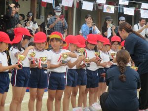 全ての競技を終えた後は、先生からごほうびのメダルやトロフィーをもらいました。