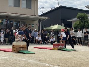 心が一つになり、感動するオープニングとなりました。個人走に親子競技、綱引き、そしてリレー。